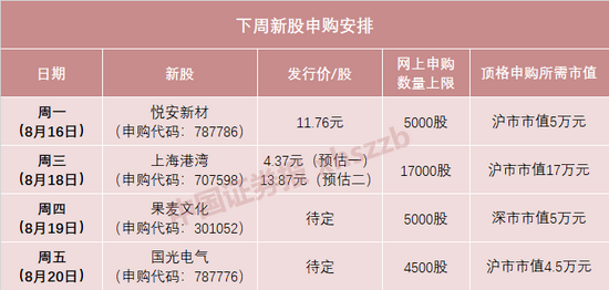 根据新股发行安排,下周A股将有4只新股申购,包括主板1只、科创板2只、创业板1只。