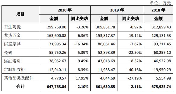 对于上述产品的收入下滑,箭牌家居称是由于消费者偏好变动较快、新建住宅户型设计更加紧凑、行业竞争更加激烈所致。不过,对比同业公司来看,在2020年惠达卫浴卫生陶瓷产品下滑了4.05%,但浴缸淋浴房产品则增长了3.72%。