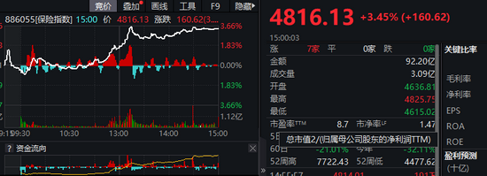 保险板块整体亦十分强势,保险指数涨幅3.45%。