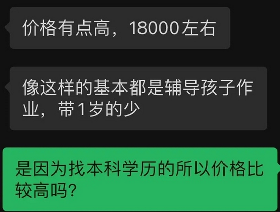 但凡有些学历与附加技能的家政阿姨,随随便便月薪就能过万。这个数字对于一线城市的整体家庭支出情况或许没有什么,但依旧有很多家庭对动辄过万的家政服务望而却步。高端家政从来不是刚需,可眼看辅导机构大幅度溃败,一个能辅导孩子的家政阿姨就变得炙手可热起来。