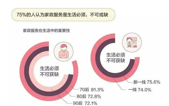 比如国际保姆协会的一组数据显示,家政人员的时薪从2012年的16美元上升至2017年的18美元。根据赶集网发布的《家政行业就业现状报告》显示,目前家政行业全国月平均薪资达到6900元,其中,北京、深圳、上海三个城市均薪资分别为8100元、6700元、7100元。