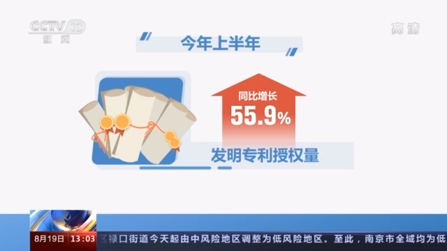 原标题:上半年全国发明专利授权量同比增长55.9% 来源:央视新闻客户端