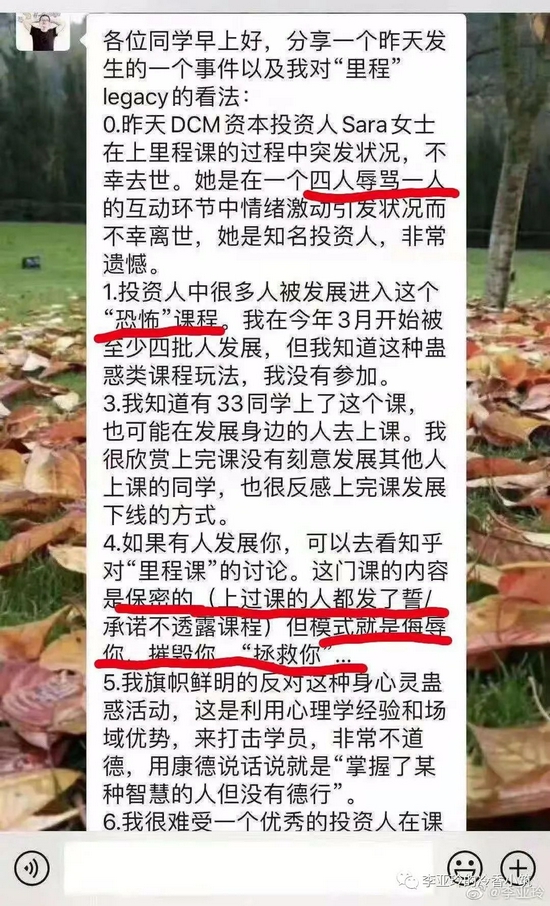 这是又一位“天价精英课程”疑似受害者,我个人在文首,先致以沉痛的哀悼!
