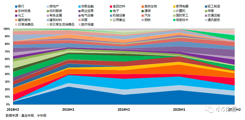 再比如从行业配置上来看,组合又体现出他各行业能力较为均衡的特点: