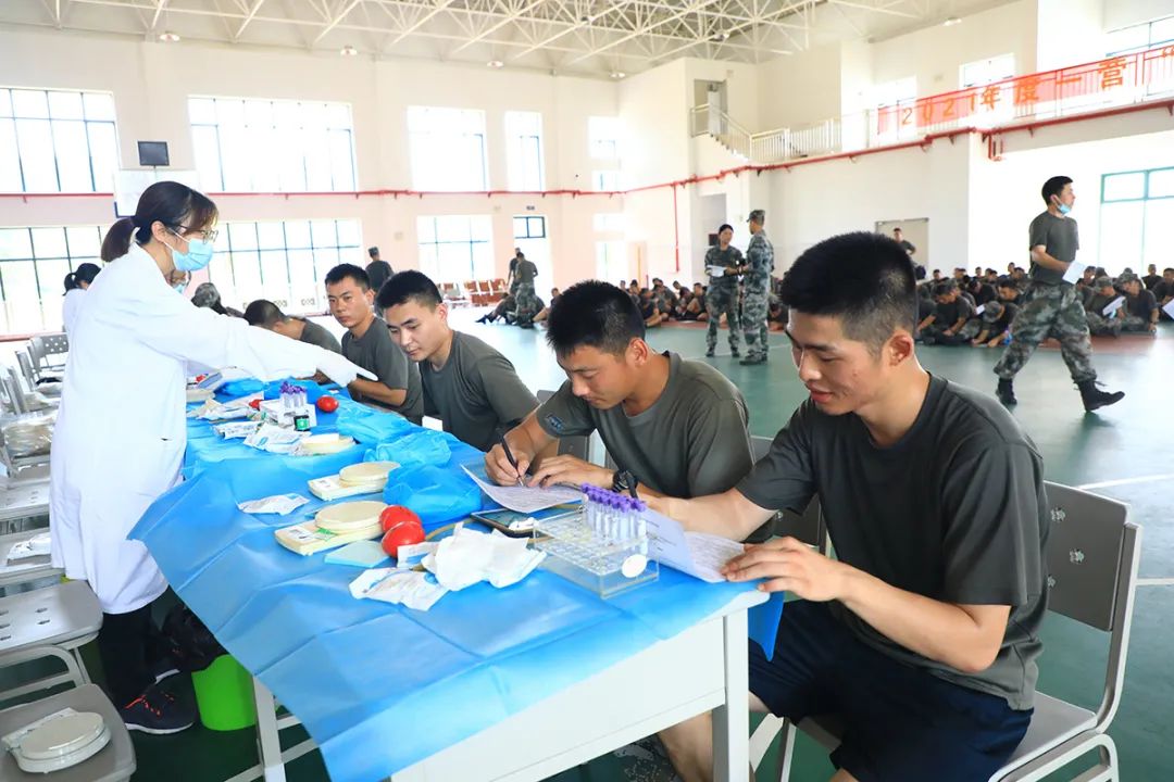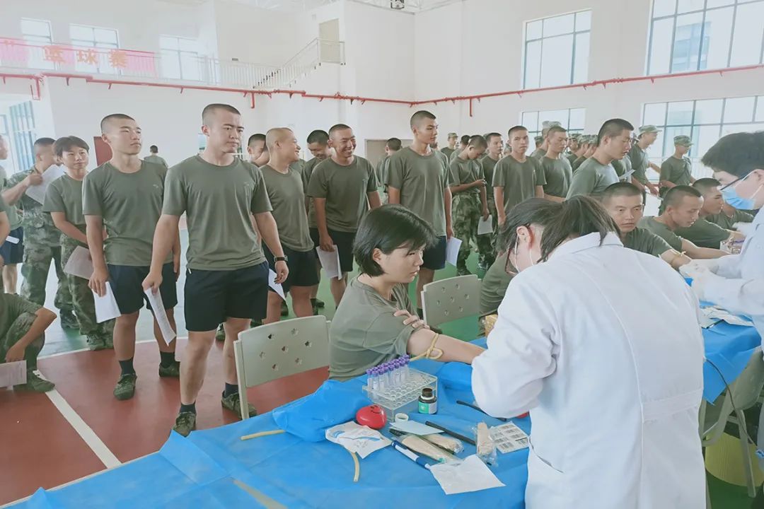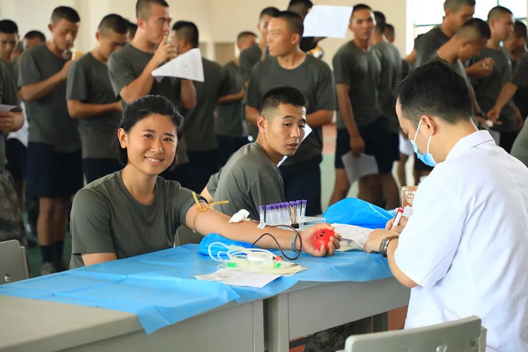 笔者在现场看到,医护人员详细向官兵讲解献血过程中的注意事项,并对官兵们的无私大爱表示诚挚的敬意和深深地感谢。领导干部、班长骨干、文职人员带头走向前列,伸出胳膊、挽起衣袖,勇敢献血。战士们依次填表、测血型、抽血,现场排成一队队长龙。