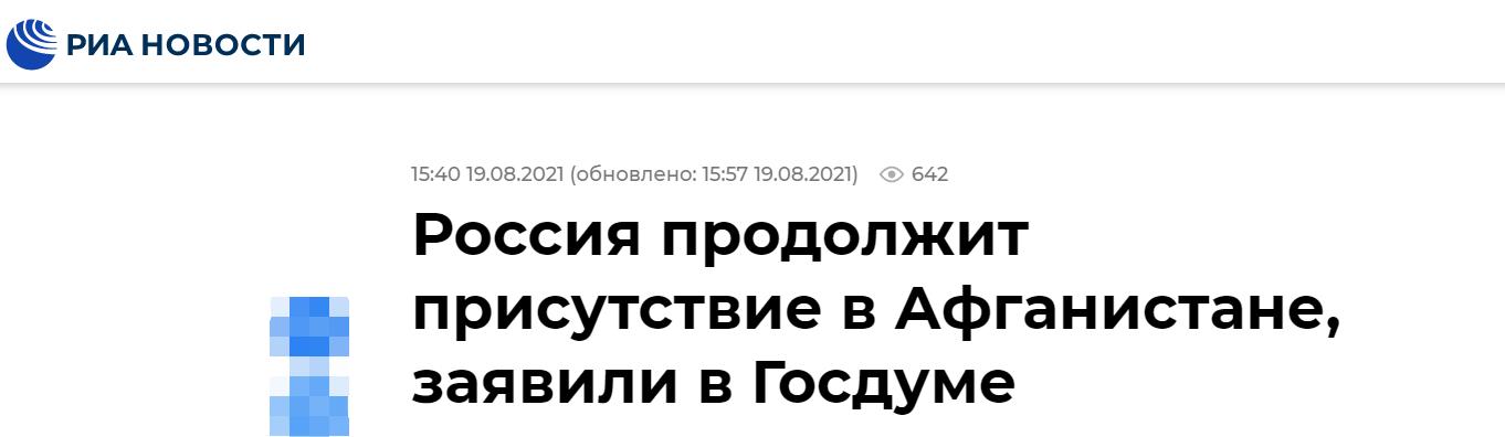 俄新社:国家杜马称俄罗斯将继续在阿富汗保持存在