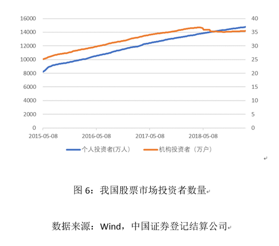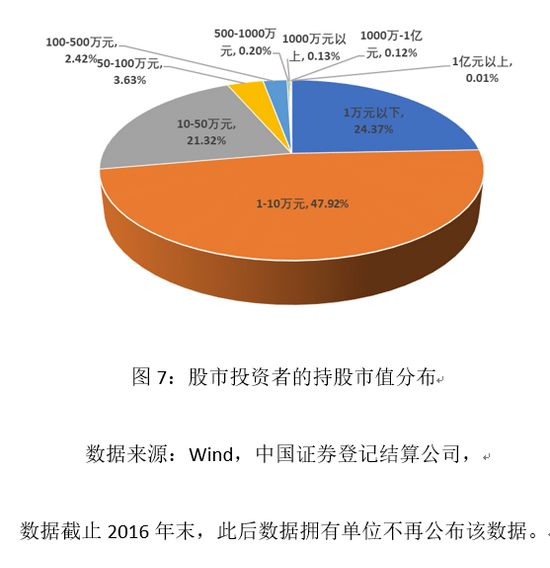 通过对已在国内公开上市的独角兽企业分析,我们认为这些企业主要不是由于高估值而被市场接纳。这些企业通常有稳定的盈利前景和自主可控的核心技术,更重要的是有明显的、可保持的竞争优势进而形成稳定增长营业收入和利润。即使按照传统的上市标准衡量,这些企业也能够达到上市要求。而对于市场包容性的真正考验是,我们能否承受经营前景不确定、估值较高的亏损企业批量进入A股市场?相信大批国内独角兽企业都希望能够按照科创板第五套标准登陆国内股市,但由于监管机构和交易所的前期把关,还没有集中出现此类案例,尽管这类企业在境外上市已是司空见惯的事。我国股市目前的发展水平和投资者结构,还不足以对独角兽企业的经营前景和估值做出准确判断,更难以承受其经营失败所造成的市场冲击。国外学者早有研究,按照单一市值标准上市的企业股票波动性,明显大于按照财务标准上市的企业。A股市场还处在多层次市场发展的初级阶段,各层次市场的主力仍然是风险承受能力较弱的低净值个人投资者(图6和图7)。市场中专业机构投资者数量不足,长期资金规模偏小,导致市场无法有效分担独角兽风险。在独角兽企业上市以后,为了更好保护公众投资者利益,境内外股票市场通常会对上市公司提出公司治理、股利政策和信息披露等方面的持续监管要求,遵守这些监管规则是上市公司基本义务。我国监管机构和交易所虽然也对科创板和创业板上市企业提出了有关持续性监管要求,但总体仍然停留在原则性规定的层面,操作性不强,对于违规行为的处置也不够明确和严格,需要在实践中不断细化。所以,在看到一些仍处亏损期的独角兽企业在境外市场高调上市,国内市场万不可盲目跟从,我们需要考虑到境内外市场在发展阶段和发展水平上的差异。