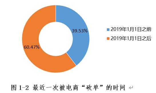 本次调查委托北京阳光消费大数据研究院开展,主要采用问卷调查和体验调查两种方式。其中,问卷调查结果显示,85.83%的受访者表示有过被电商“砍单”的经历,比2019年上升了10.82%。而在这些人当中,又有超过60%的人最近一次被“砍单”是在2019年1月1日之后,说明《电子商务法》实施以来,电商“砍单”问题并没有得到遏制,反而有上升趋势。
